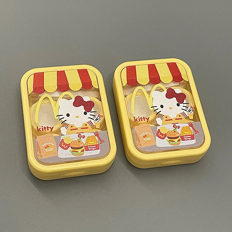 Keep your contact lenses safe and stylish with this adorable Sanrio Hello Kitty contact lens box set! Featuring a cute bow design, this square storage box includes two sets, making it the perfect companion for lens care and a sweet gift for Hello Kitty fans.