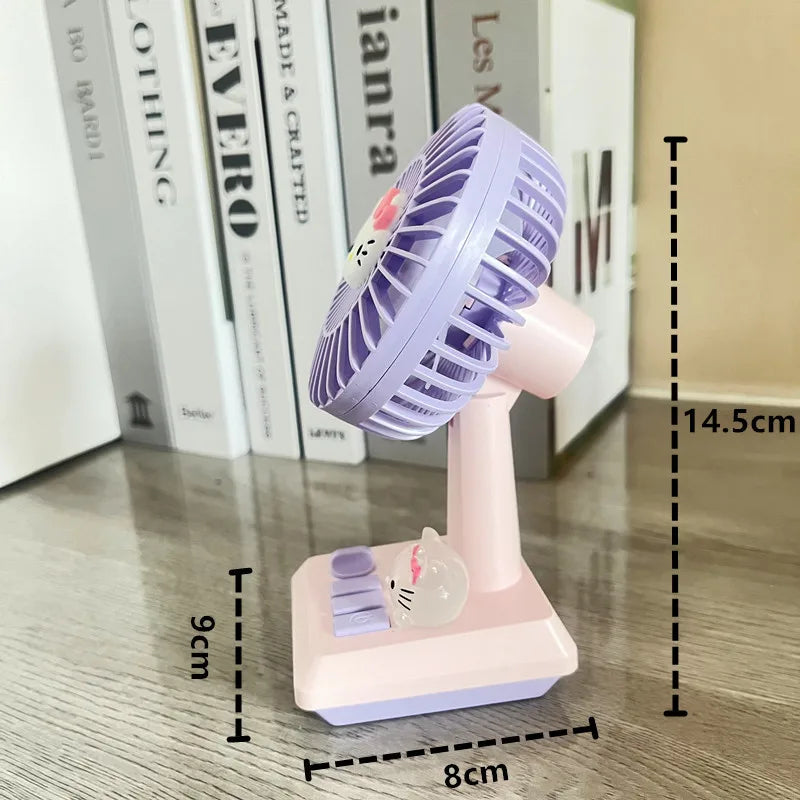 Sanrio Hello Kitty & Kuromi Desktop Small Fan – USB Charging with Wind-Discolored Atmosphere Lights